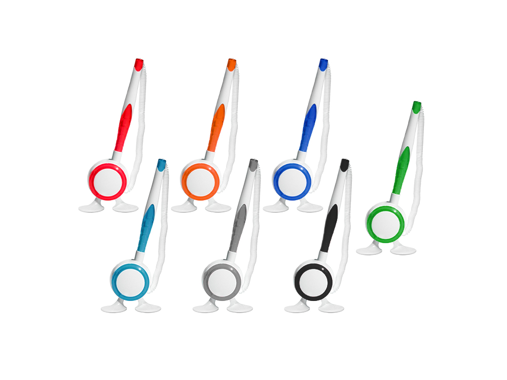 Descripción: Lapicero plástico retráctil de color traslúcido, con goma antideslizante en la base.